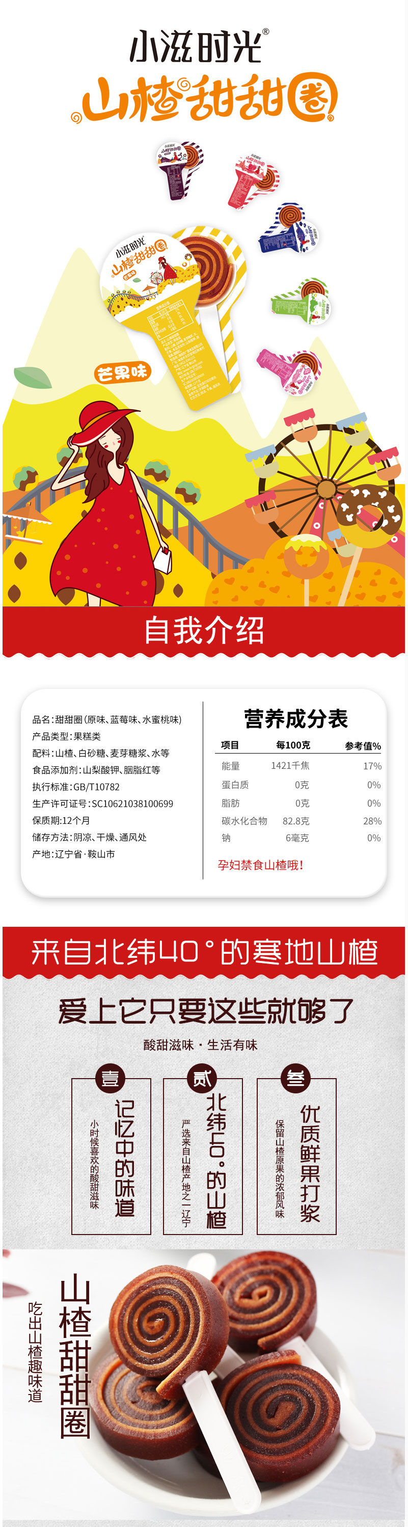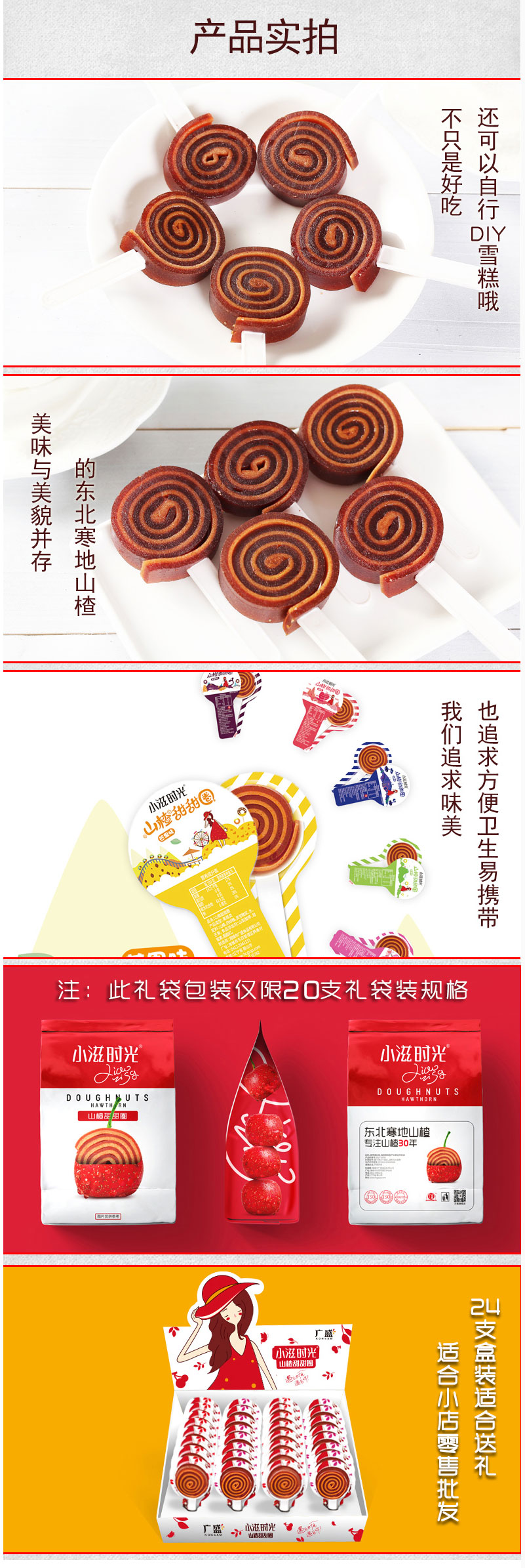 廣盛旗艦店小滋時光甜甜圈山楂卷果丹皮混合原果味棒棒糖零食果脯